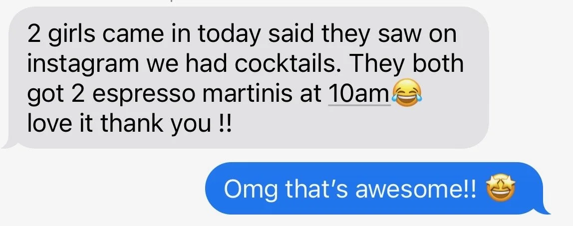 Description: A local coffee shop in a small town that is a specialty espresso bar + craft cocktails and infusions